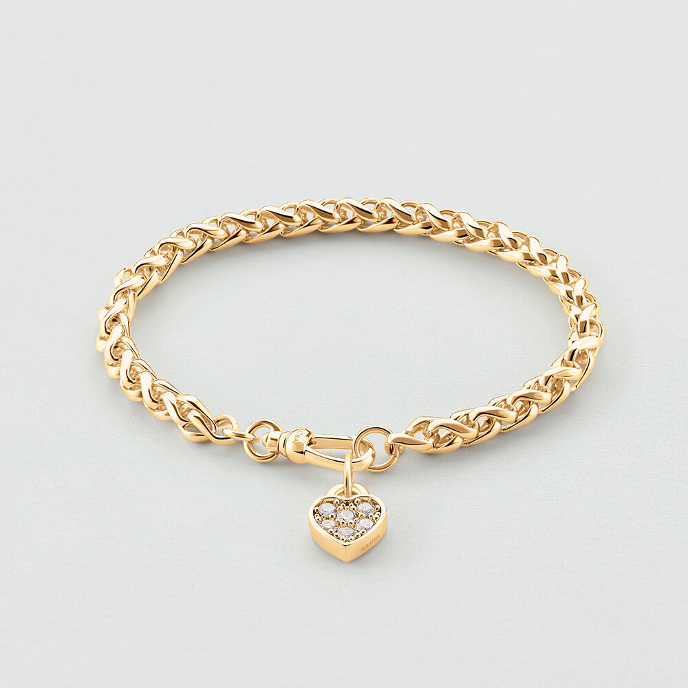 Pulsera de malla trenzada acabada en oro. Puedes llevarla tal cual o puedes decorarla con los colgantes de la colección. Una joya personalizable que puedes ir transformando y llevar un pulsera diferente cada día.