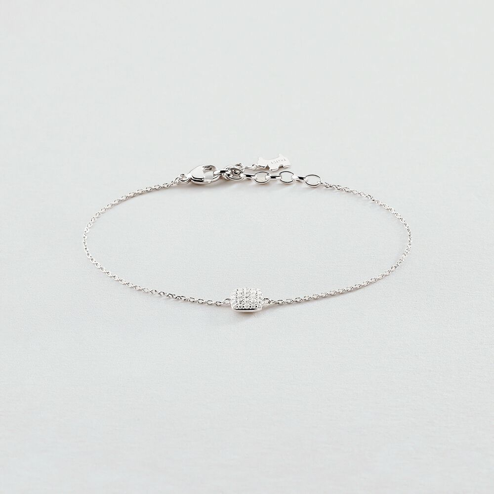 Pulsera de plata de ley con cojín de circonitas. Una joya de siempre revisitada para aportar un toque moderno y actual. Ideal para lucir en tu día a día y para que te acompañe en tus ocasiones más especiales. Esta pulsera es también una firme candidata a ser el regalo perfecto, ¿Te vas a resistir?.