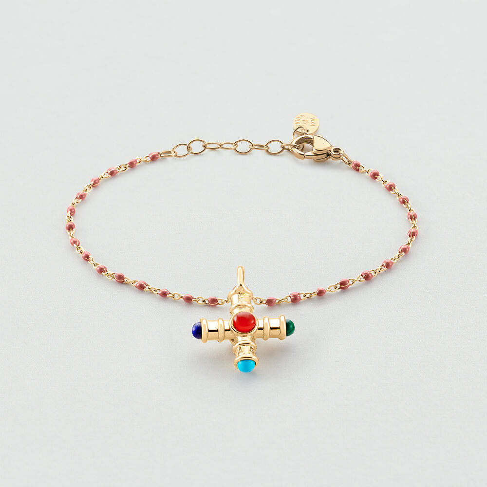 Pulsera de acero inoxidable y bolitas de esmalte. Estas pulseras son ideales para el día a día. Acumula tantas como quieras para un total look súper original y favorecedor. Esta joya mide 150mm y tiene un alargo de 30mm