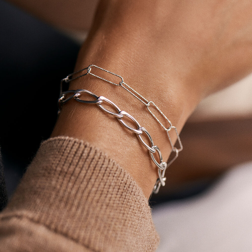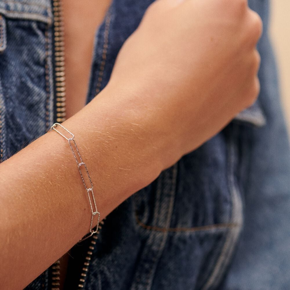 Pulsera de cadena texturizada con eslabones rectangulares. Es de plata de ley. Una verdadera segunda piel que querrás lucir a todas horas..