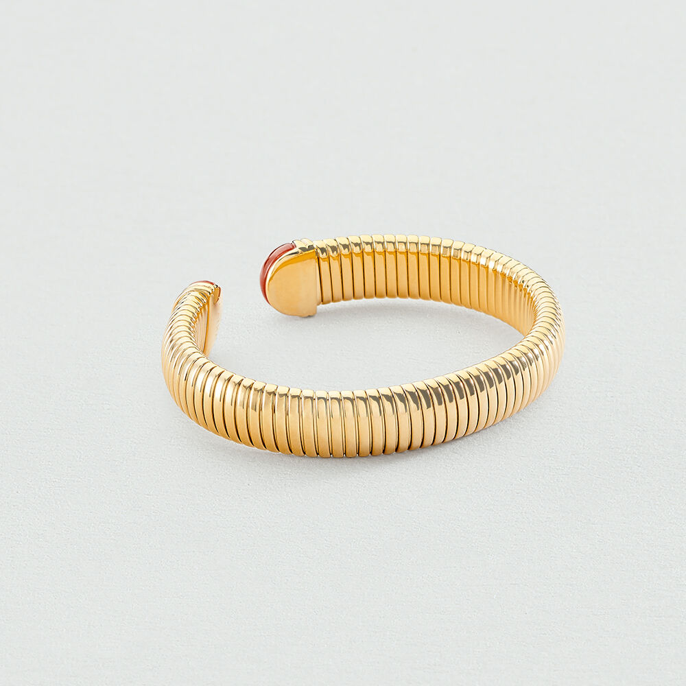 Pulsera de acero con cabujones de color en los extremos. Una apuesta muy rock para romper tus outfits del día a día y para darle un rollo máximo a tus estilismos más especiales. Combínala con tus pulseras favoritas para un total look de infarto. Be by Maria Pombo habla de ser y de estar. De ser tú misma y poder estar donde quieras. Joyas para sentirte bien y joyas para llevar dónde necesites: en tu día a día, a la oficina, a tus momentos más especiales, en casa, cuando quedes con tus amigas o hagas un plan que te apetezca.