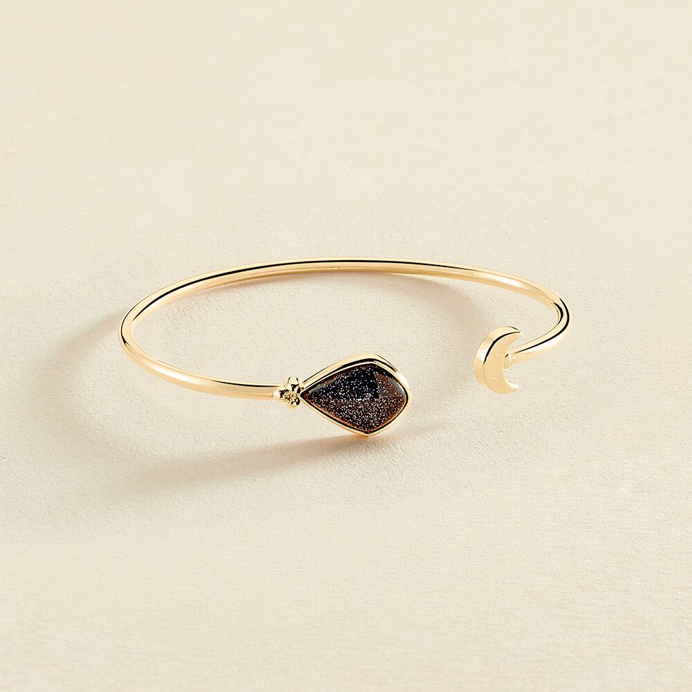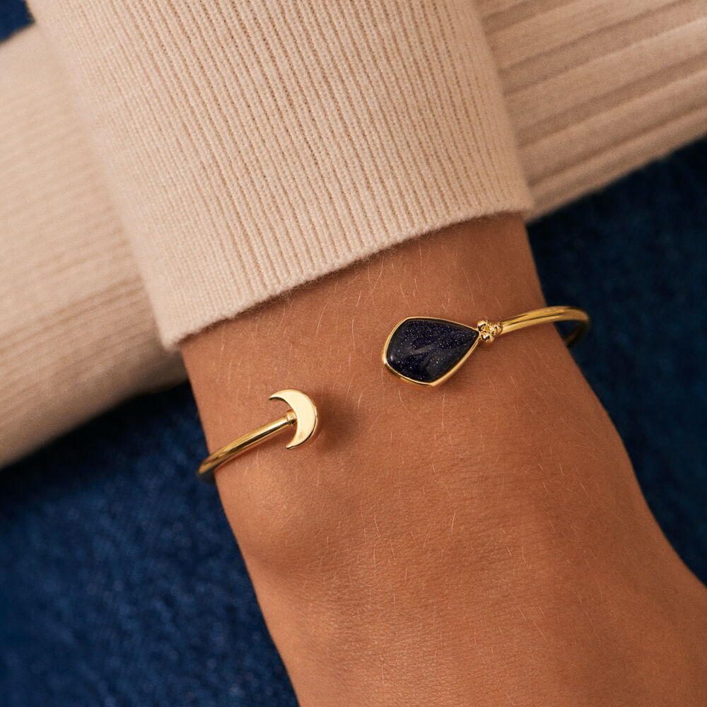 Pulsera rígida fina acabada en oro con ojo de gato o blue sandstone en un lateral. Una joya fácil de integrar en tus outfits diarios y que aportará la luz y el color ideales gracias a sus piedras, te toca a ti decidir si eres más de blanco o de azul. Combina esta pulsera con el collar y los pendientes a juego para un total look arrebatador. Una colección inspirada en la luna que podrás lucir durante todo el año y que no te querrás quitar. Acómpañanos en este eclipse lunar creado por Sara Carbonero para Agatha Paris y hazte con las joyas de moda..