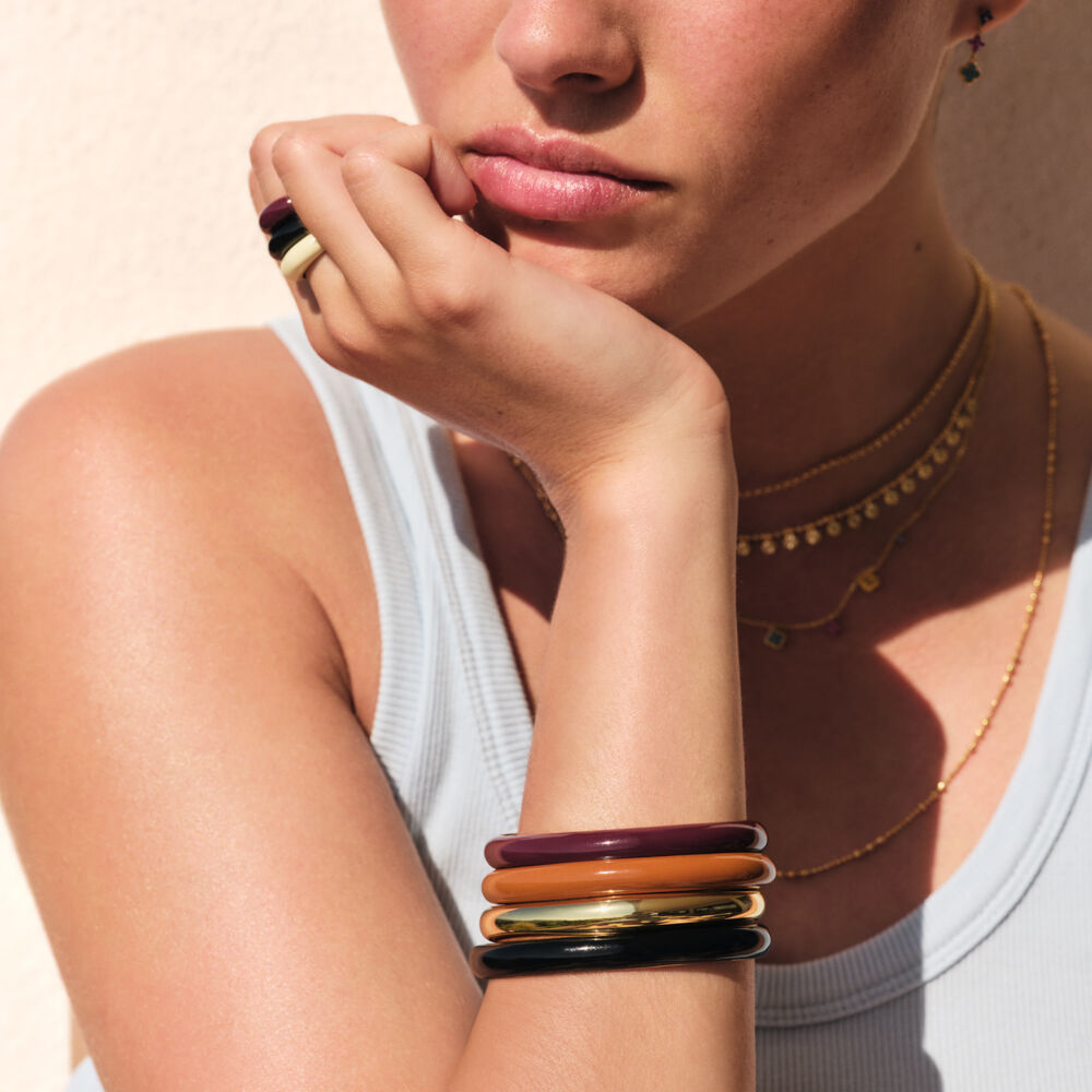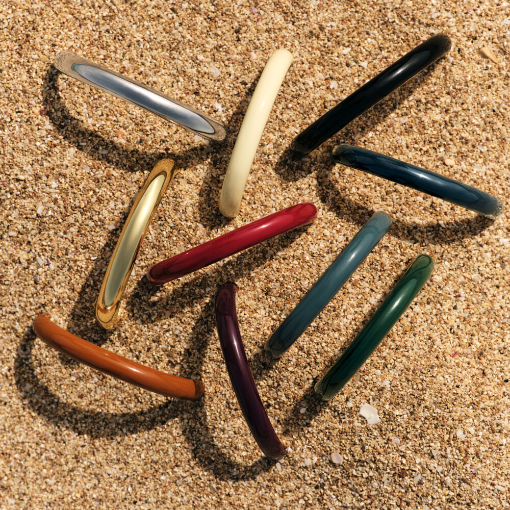 Brazalete de acero inoxidable con una silueta elegante y minimalista.