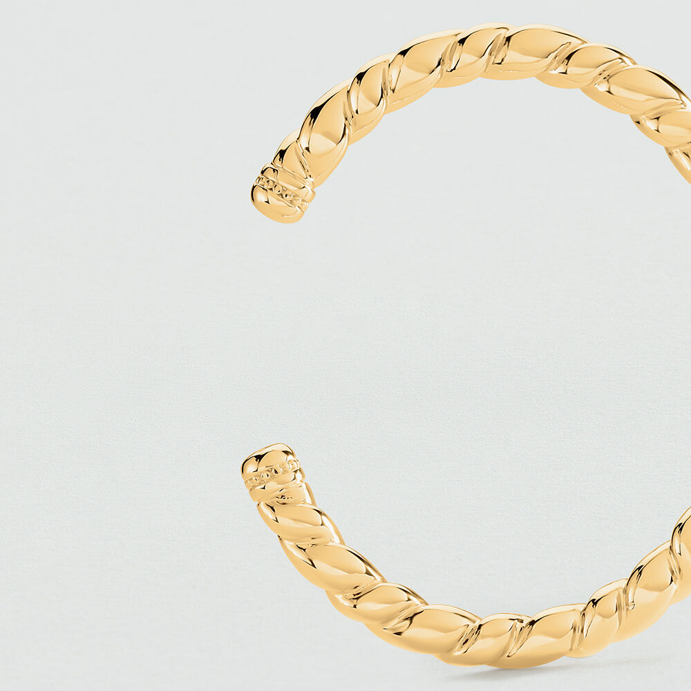 Pulsera rígida abierta con textura y acabada en oro. Una joya chic que podrás ponerte con todo. Ideal para llevar sola, pero también perfecta para combinar con su anillo a conjunto.